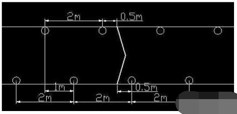 地下連續墻聲測管每相鄰兩個管距離不大于2m;呈平行四邊形布置,如圖二所示。每根鋼管最后焊接在地墻鋼籠內側,一 起下放入槽。